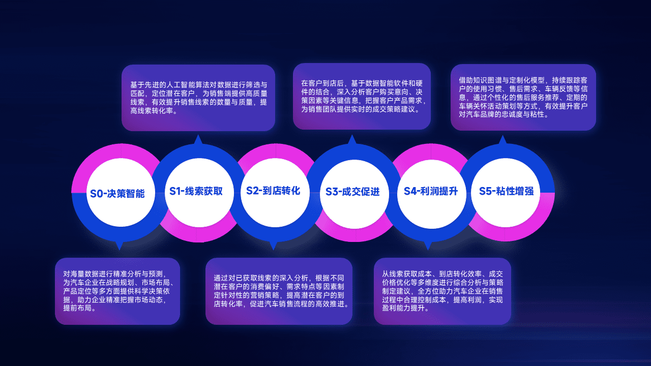 通过拓宽潜在客户来源、、优化线索分配并提高到店转化率,,,以增强销售效率。。。同时,,利用线索数据不断优化分析模型,,有效提升转化率,,,,扩大营销影响力。。